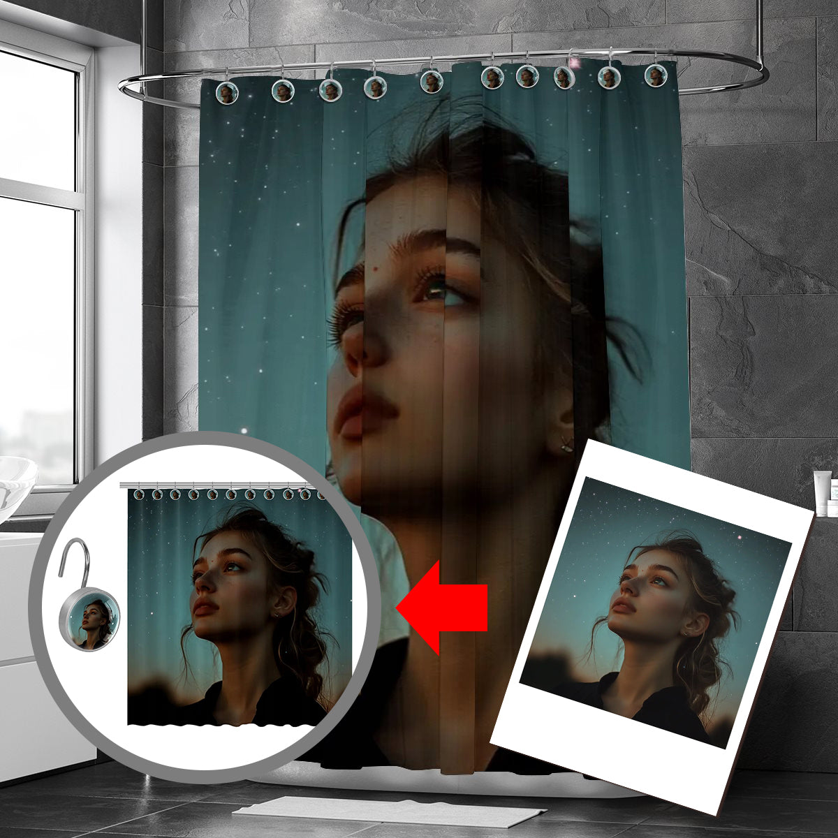 Polyester shower curtain with hooks
